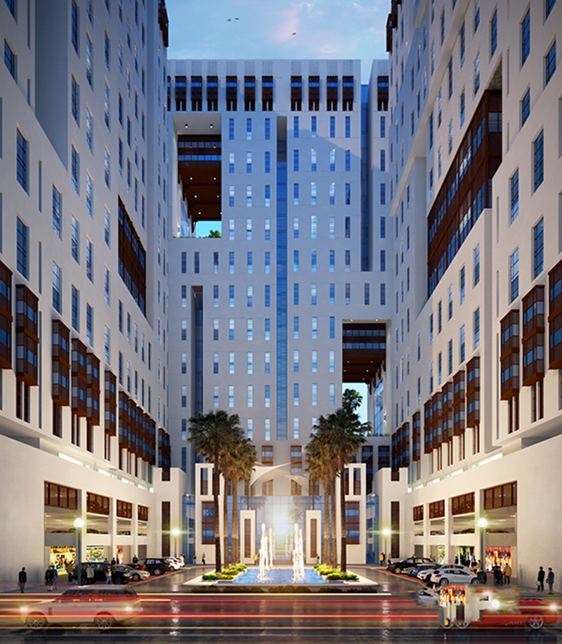 The project is a design of a range of residential towers on an area of 280,000 sqm in Al-Andalus scheme in Makkah Al-Mukarramah. The area is surrounded by a number of important commercial streets (Ibrahim Al-Khalil Street - Abdul Qadir Koshak Street - Al-Laith Road) that offer a variety of exceptional services.