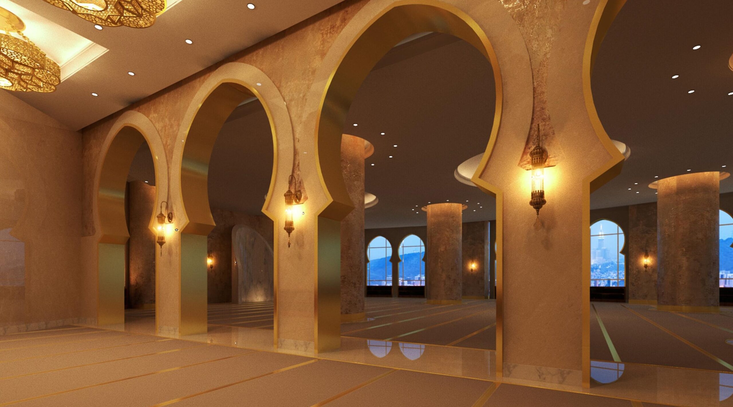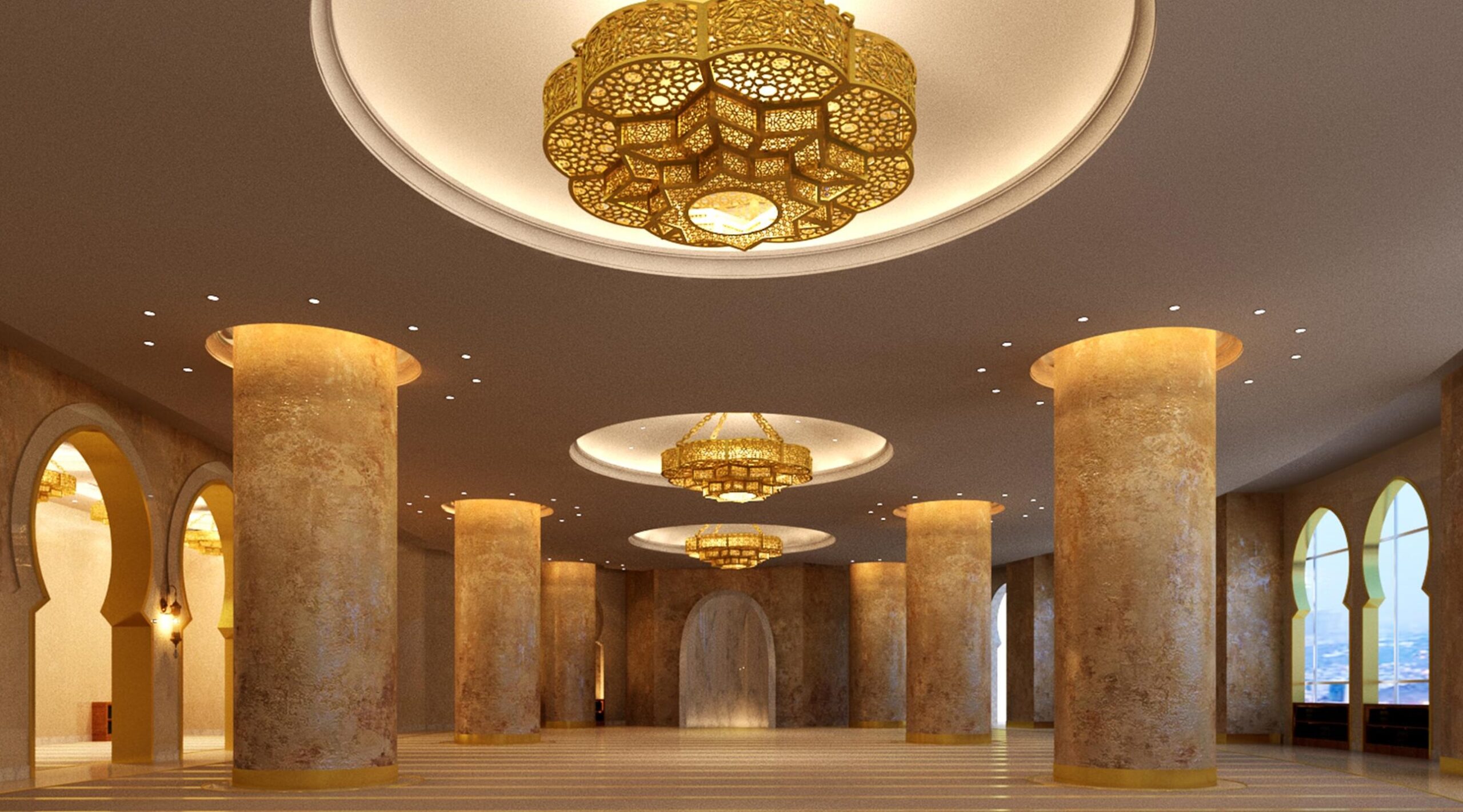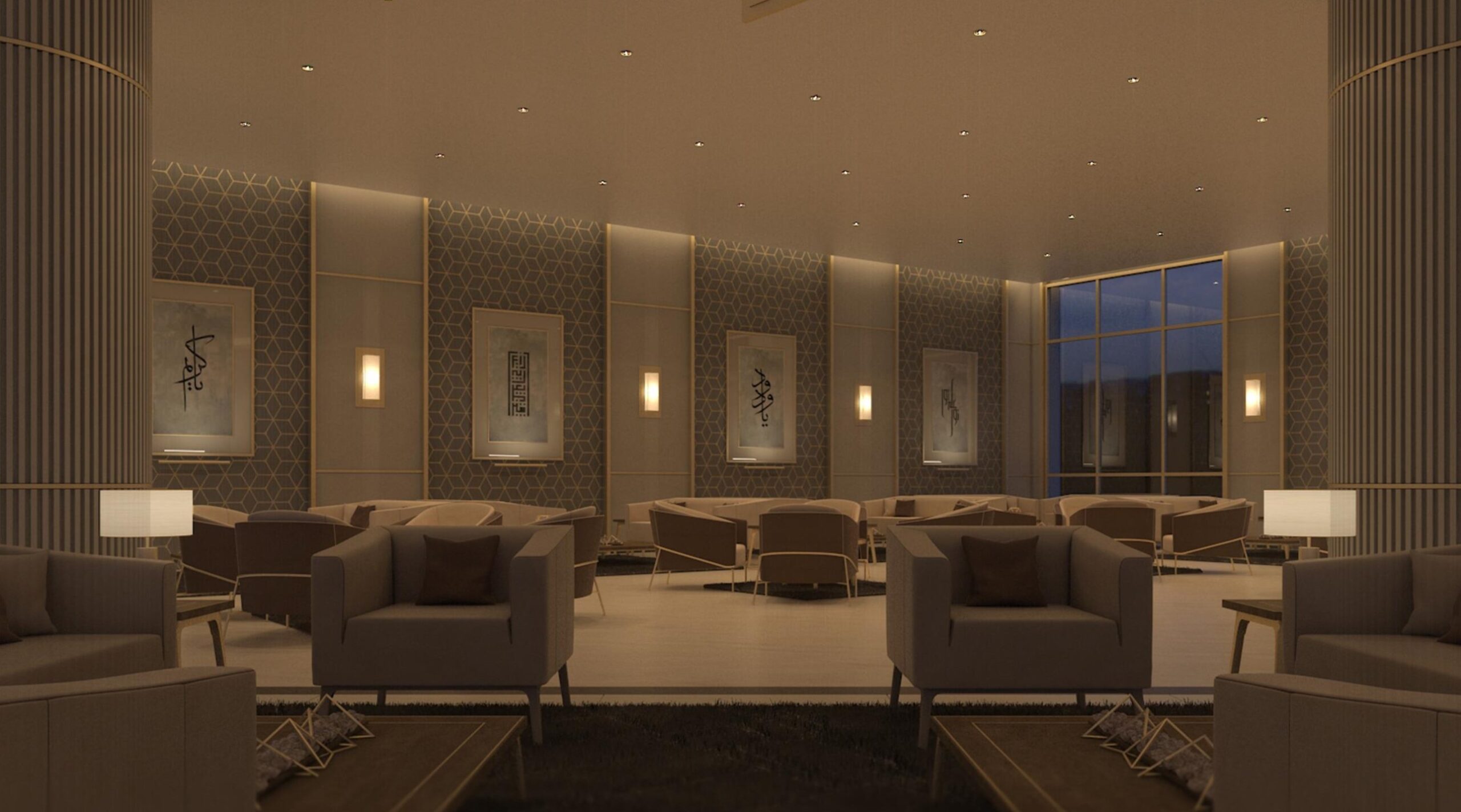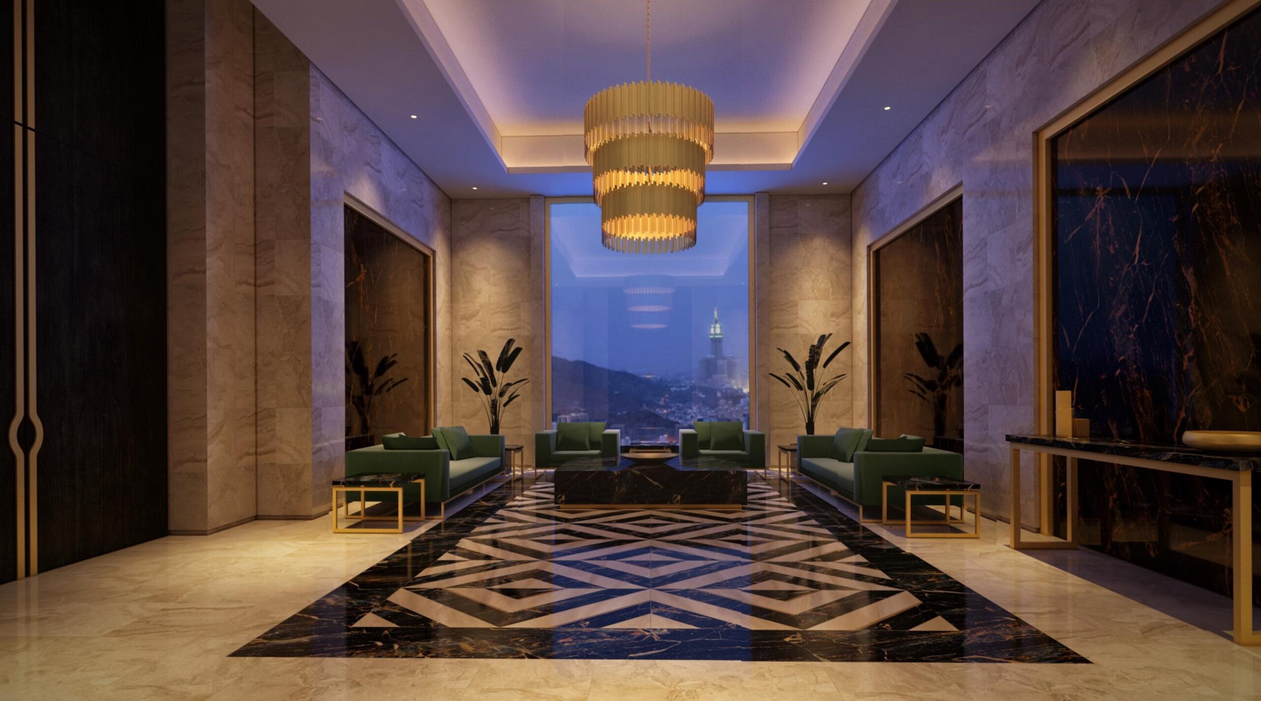 Architecture and interior design are included in the scope of the work. All interior spaces and facilities, such as events halls and restaurants, were designed. The interior design of the attached mosque was also developed. - Hotel accommodations, such as rooms and suites have been created to meet the needs of pilgrims.