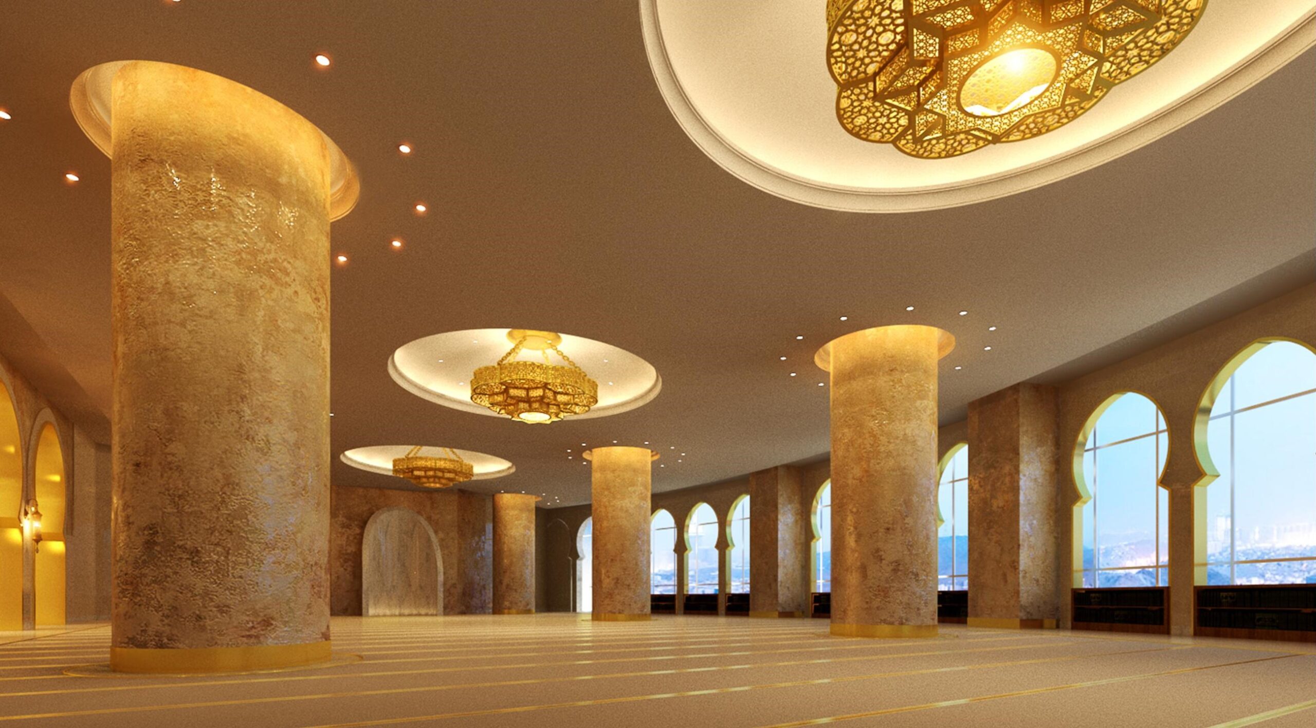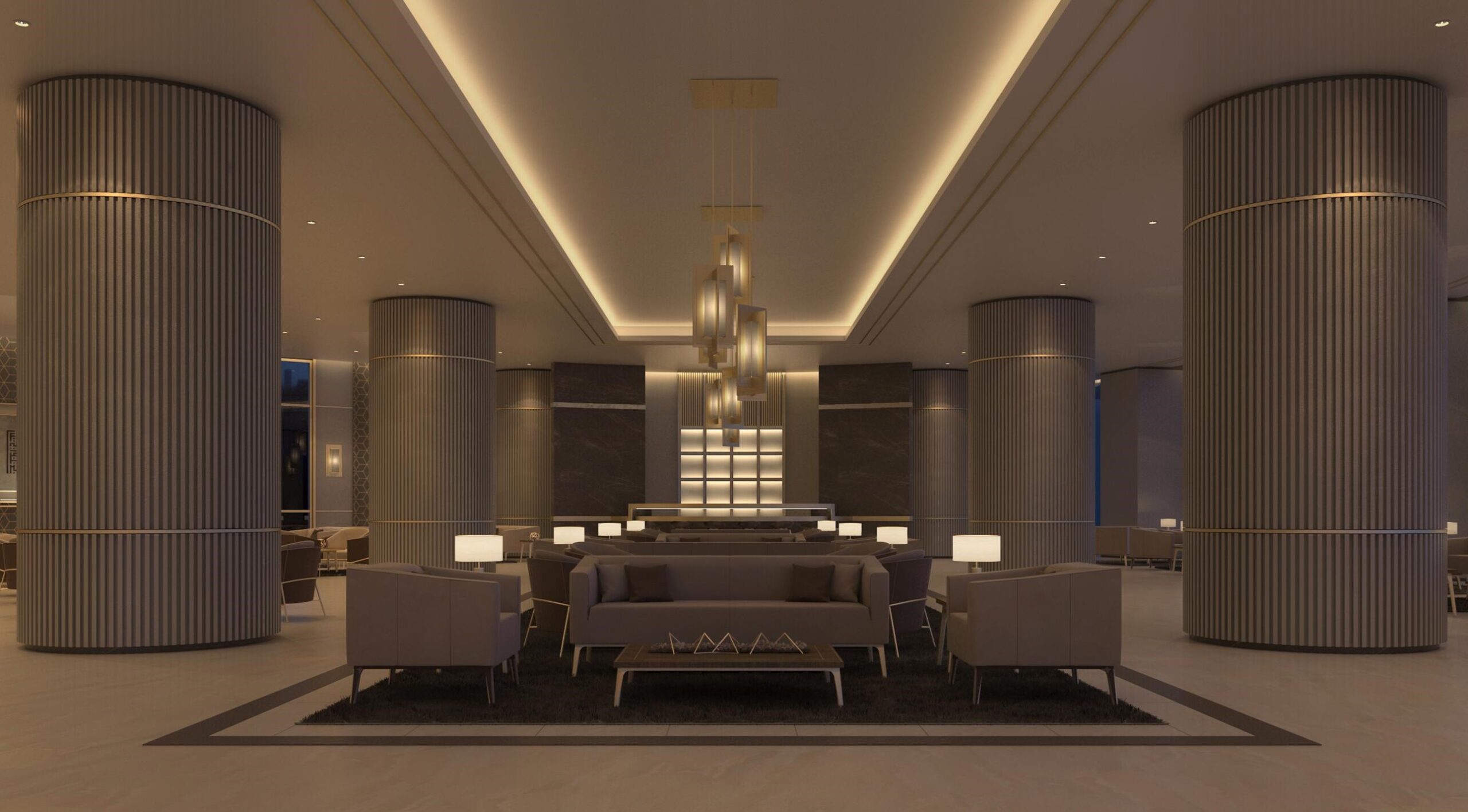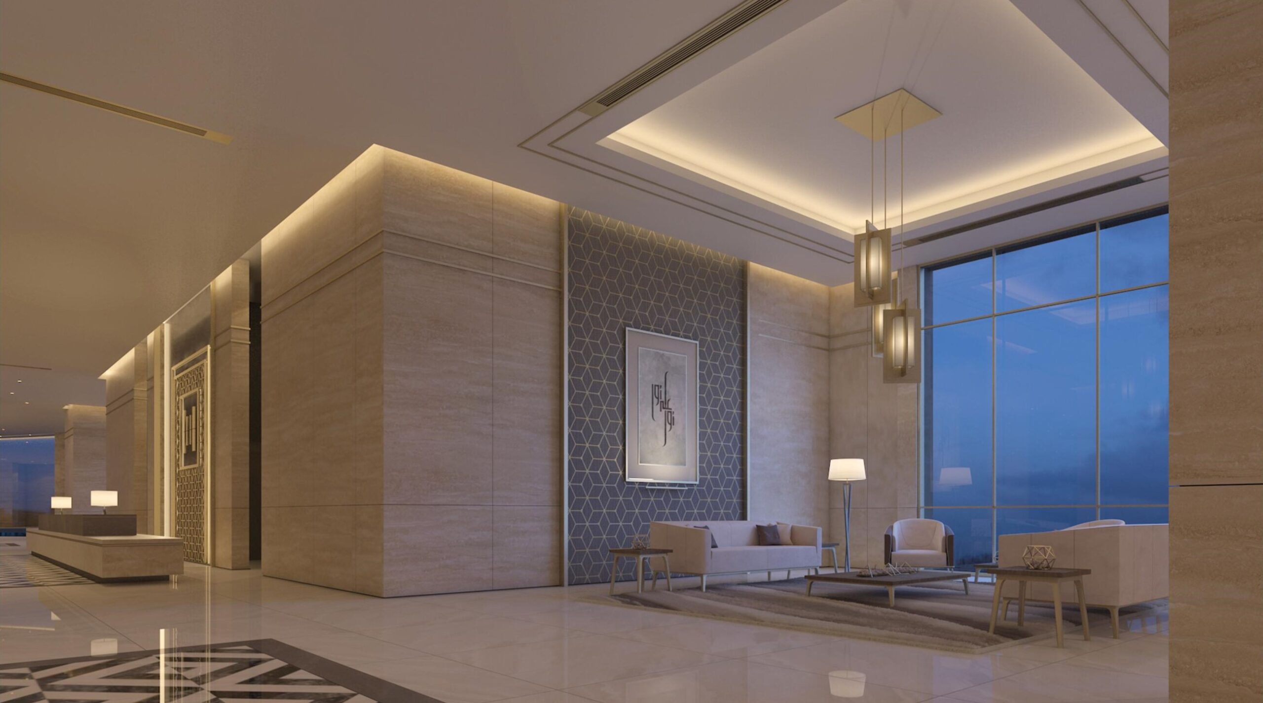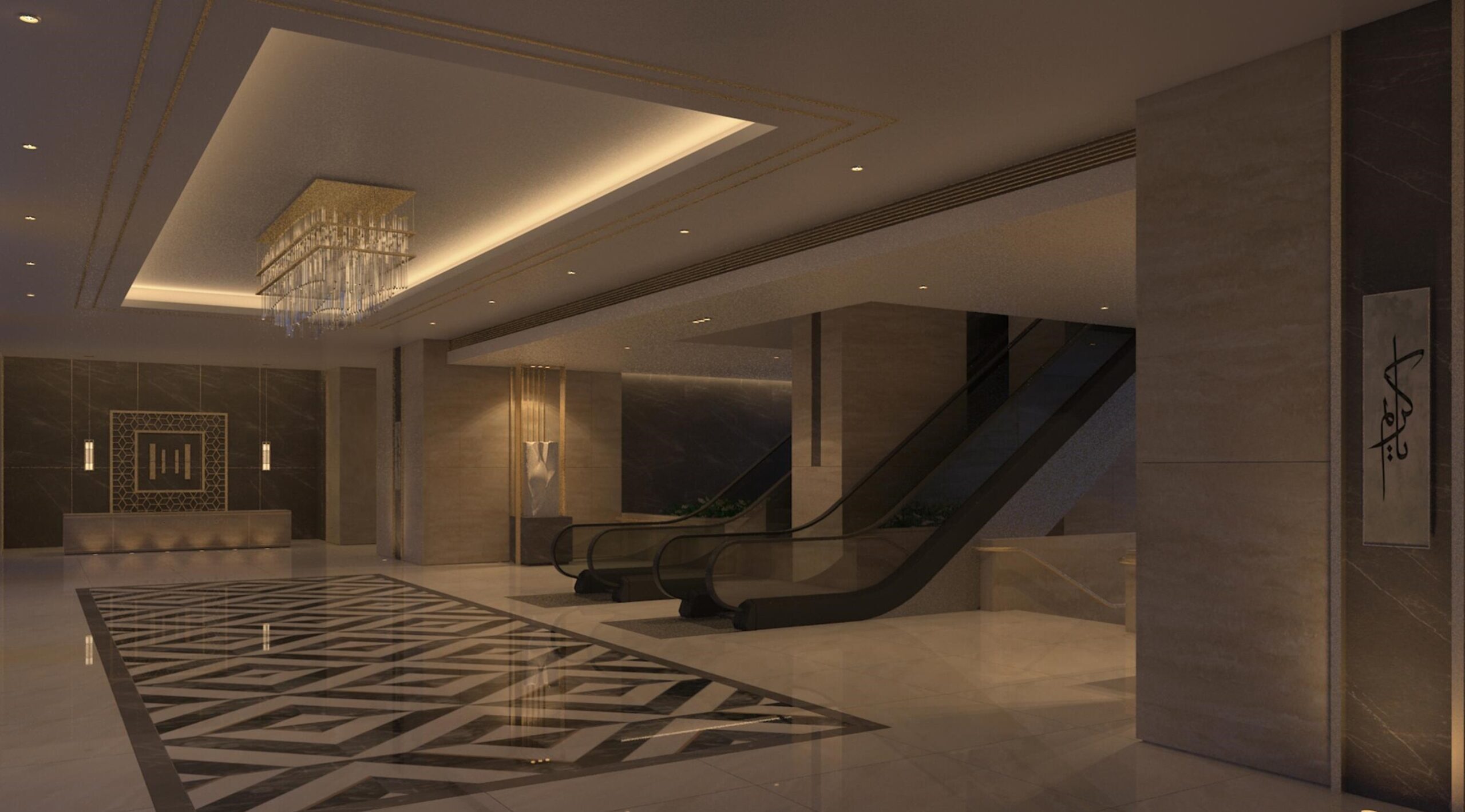 Architecture and interior design are included in the scope of the work. All interior spaces and facilities, such as events halls and restaurants, were designed. The interior design of the attached mosque was also developed. - Hotel accommodations, such as rooms and suites have been created to meet the needs of pilgrims.