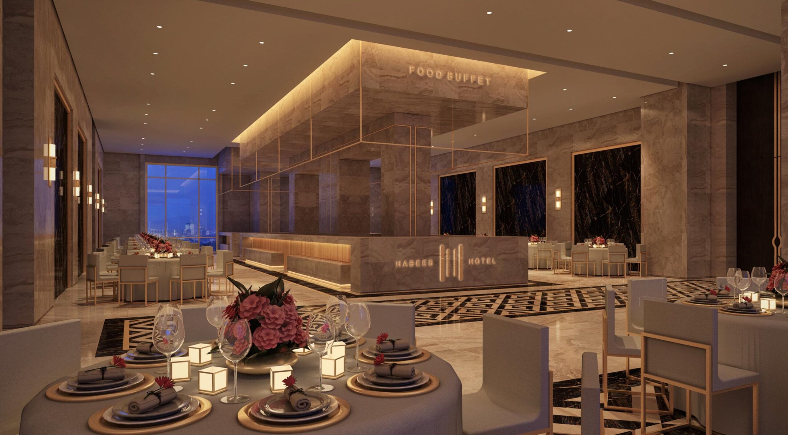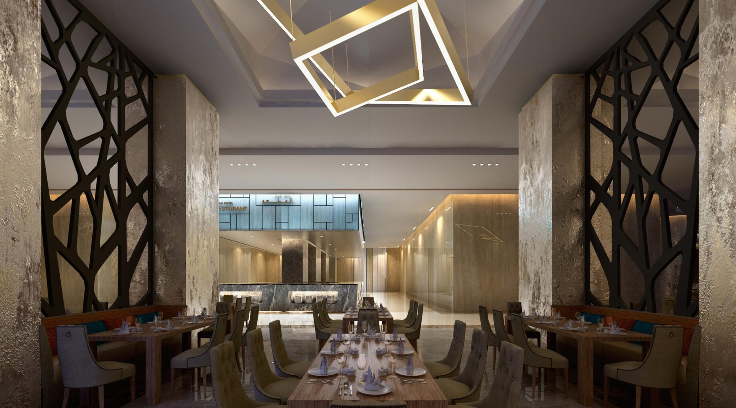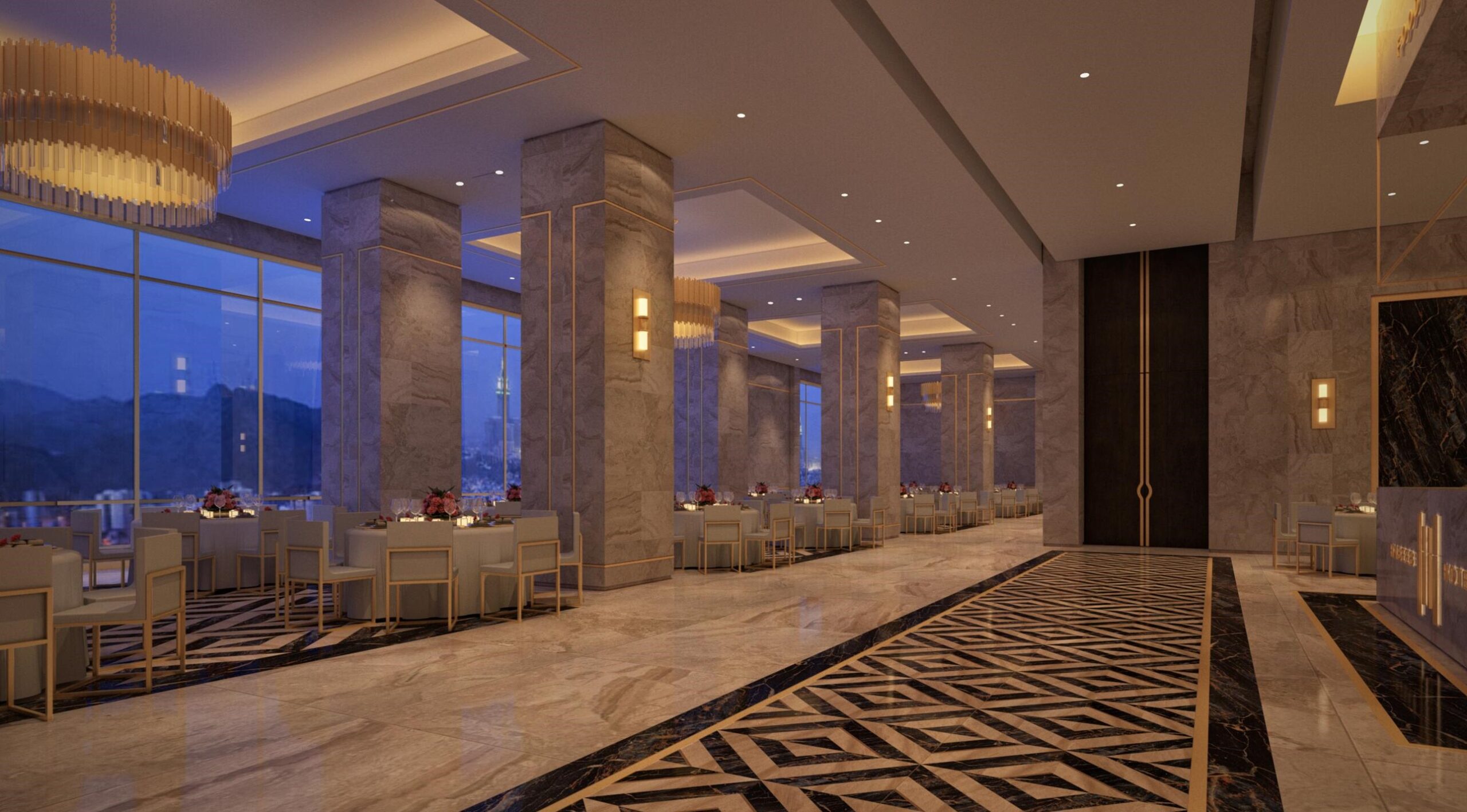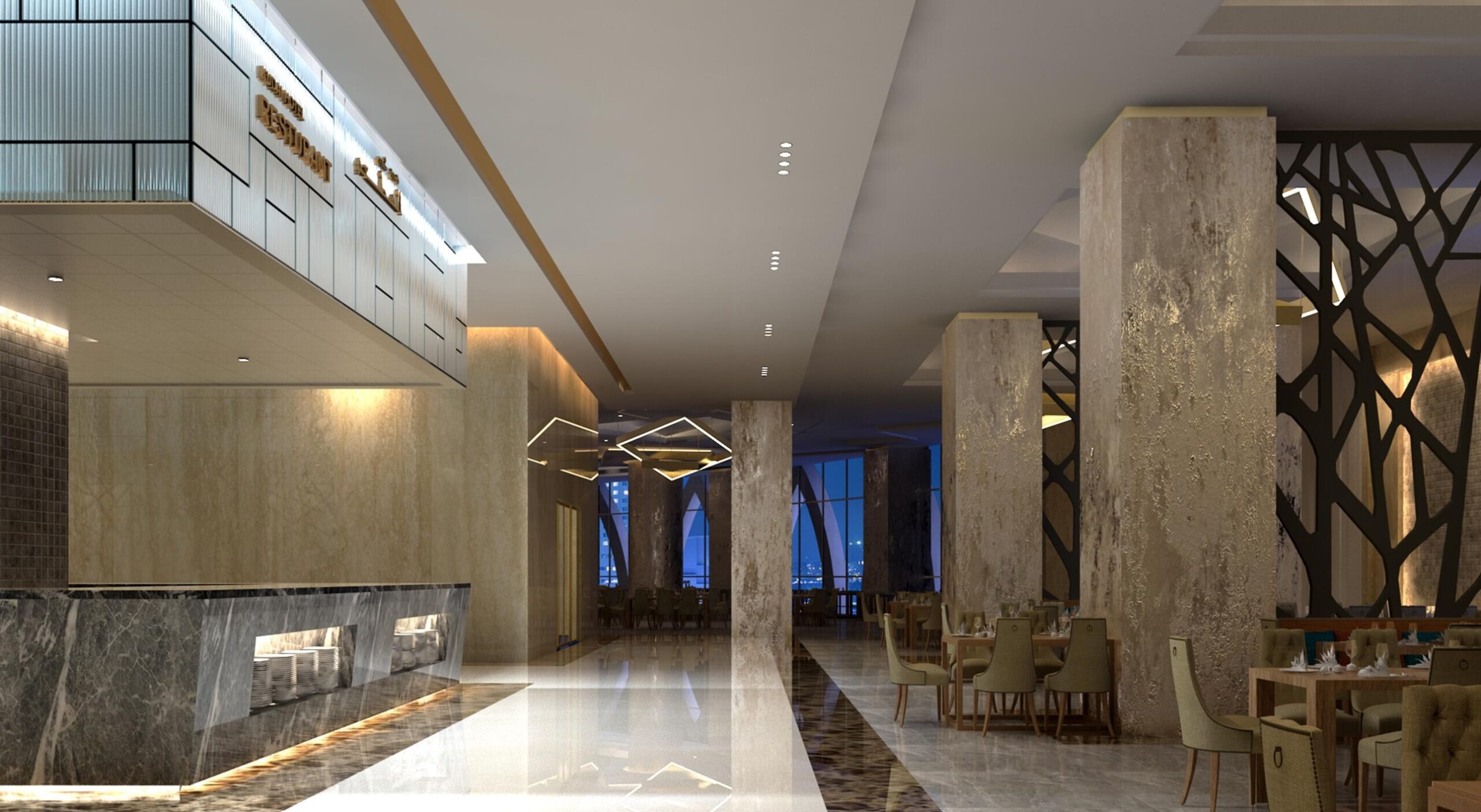 Architecture and interior design are included in the scope of the work. All interior spaces and facilities, such as events halls and restaurants, were designed. The interior design of the attached mosque was also developed. - Hotel accommodations, such as rooms and suites have been created to meet the needs of pilgrims.